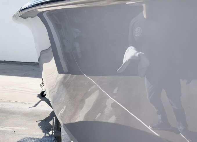 Now that your vessel has been corrected with precision and thoroughly cleaned, it’s time to gloss it up with the finest in marine surface science: our glimmering, pearly-sheen ceramic coatings.