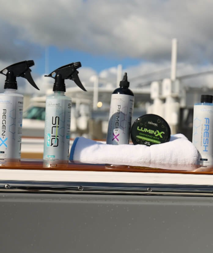 We use the Ceramic DNA Edge Professional line, a high-performance system developed for both new and weathered surfaces. While Sean Kelly didn’t formulate the chemistry himself, he engineered a complete system and process that brings out the highest potential of any boat’s surface—whether it’s just launched or 10 years old.